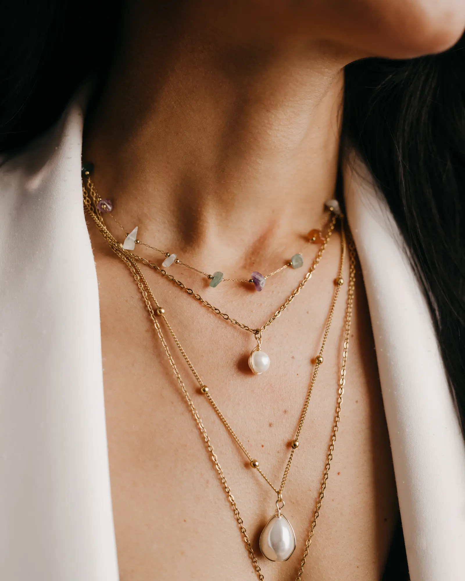 La turmalina es conocida por ser una poderosa piedra de protección. Se dice que tiene la capacidad de absorber las energías negativas y proteger a quien la lleva de influencias dañinas. Este mineral también purifica y armoniza la energía que circula en nuestro cuerpo, favoreciendo así un mejor equilibrio entre nuestros diferentes chakras. El CHOKER TURMALINA combina distintos colores de la piedra: